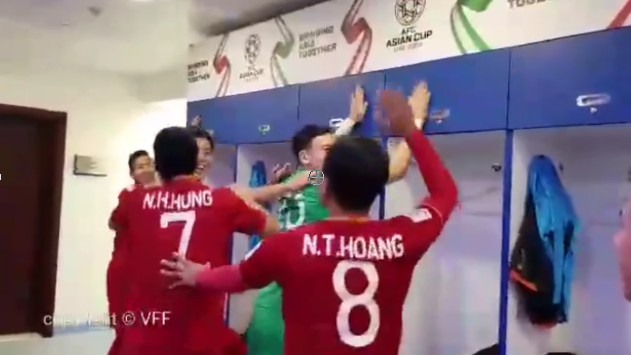 Sau 120 phút thi đấu căng thẳng, tuyển Việt Nam đã xuất sắc hạ gục Jordan trên chấm 11m, ghi danh vào tứ kết Asian Cup 2019. Sau trận đấu, thủ môn Đặng Văn Lâm cùng các đồng đội đã liên tục hò reo ăn mừng chiến thắng trong phòng thay đồ.