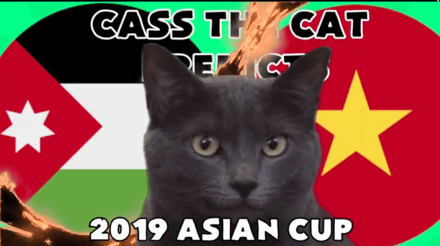 18h ngày 20.1, ĐT Việt Nam sẽ có trận đối đầu với ĐT Jordan trong khuôn khổ vòng 1/8 Asian Cup 2019. Đã 2 lần gặp nhau và chưa phân thắng bại, Việt Nam đang quyết tâm giành chiến thắng để vào tứ kết. Tuy nhiên mèo tiên tri Cass đã đưa ra dự báo đáng lo lắng trước trận đấu.