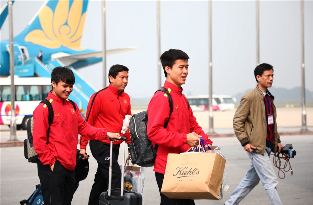 Chia sẻ cảm xúc sau khi đặt chân xuống sân bay Nội Bài, thủ thành Văn Lâm cho biết: "Toàn đội có đôi chút mệt mỏi, nhưng tất cả đều vui sướng và hạnh phúc khi được người hâm mộ chào đón nồng nhiệt".