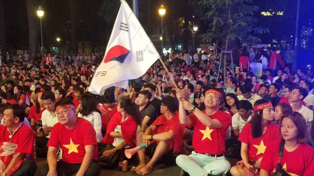 Hàng nghìn cổ động viên với cờ đỏ sao vàng, băng rôn, khẩu hiệu đang tập trung về trung tâm Sài Gòn để theo dõi trận tứ kết hấp dẫn giữa đội tuyển Việt Nam và Nhận Bản diễn ra vào lúc 20h ngày 24.1.
