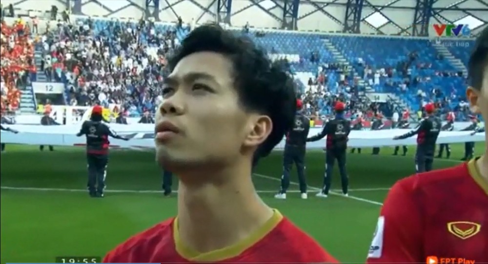 Trong không khí lịch sử của trận tứ kết Asian Cup 2019, các chiến binh áo đỏ sao vàng thể hiện sự quyết tâm giành chiến thắng trước Nhật Bản bằng việc hát vang Quốc ca Việt Nam.