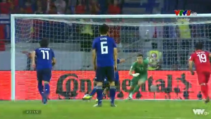 Phút 24 - hiệp 1, từ một pha đá phạt góc, trung vệ Yoshida băng vào đánh đầu cận thành tung lưới tuyển Việt Nam. Rất may trọng tài đã xem lại công nghệ VAR và từ chối bàn thắng của Nhật Bản.