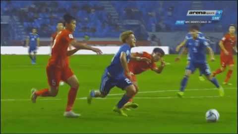 Sau cú ngã của Ritsu Doan trong vòng cấm Việt Nam, và quyết định xem lại VAR của trọng tài, ĐT Việt Nam đã phải nhận bàn thua từ một quả penalty.