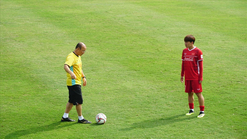Sáng 26.12, đội tuyển Việt Nam có buổi tập nhẹ tại Trung tâm đào tạo bóng đá trẻ Việt Nam. Trong buổi tập, HLV Park Hang-seo dành nhiều thời gian cho bộ ba Văn Hậu, Minh Vương và Hồng Duy.