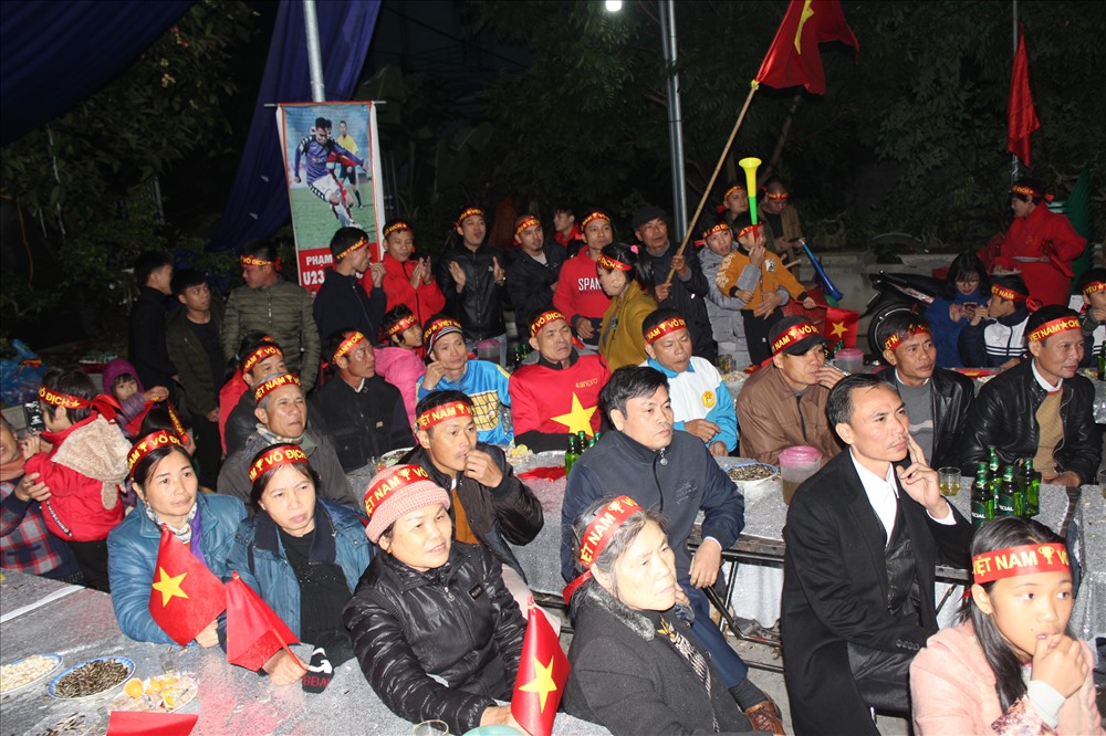 Ở phút thứ 24, tiền vệ Đức Huy ghi bàn thắng thứ 2 cho tuyển Việt Nam, tại quê nhà Hải Dương, gia đình cầu thủ này như vỡ òa trong hạnh phúc.