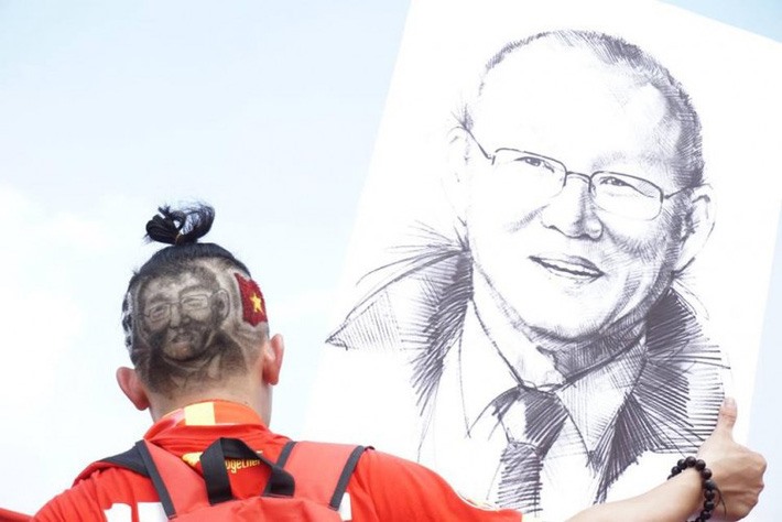 Trước thềm trận bán kết AFF Cup lượt về giữa Việt Nam - Philippines, nhiều cổ động viên Việt Nam chọn cách cổ vũ "cực chất" như khắc họa chân dung "vị thuyền trưởng" HLV Park Hang-seo, Công Phượng đến Tiến Dũng, Văn Đức...trên mái tóc.