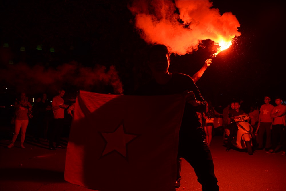 Ngay sau chiến thắng của tuyển Việt Nam trước Philippines, hàng nghìn người đã đổ ra đường ăn mừng. Tại Hà Nội, người hâm mộ nô nức đi "bão" khiến mọi tuyến phố đều rơi vào tình trạng ùn tắc.