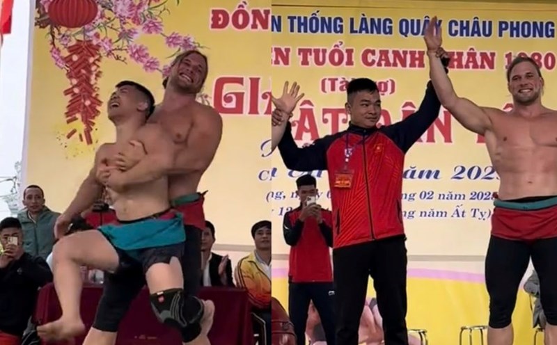 Wrestling Zakhar Dzmitrychenka (Belarus) caused a fever when constantly winning in Vietnamese village wrestling associations in early spring.