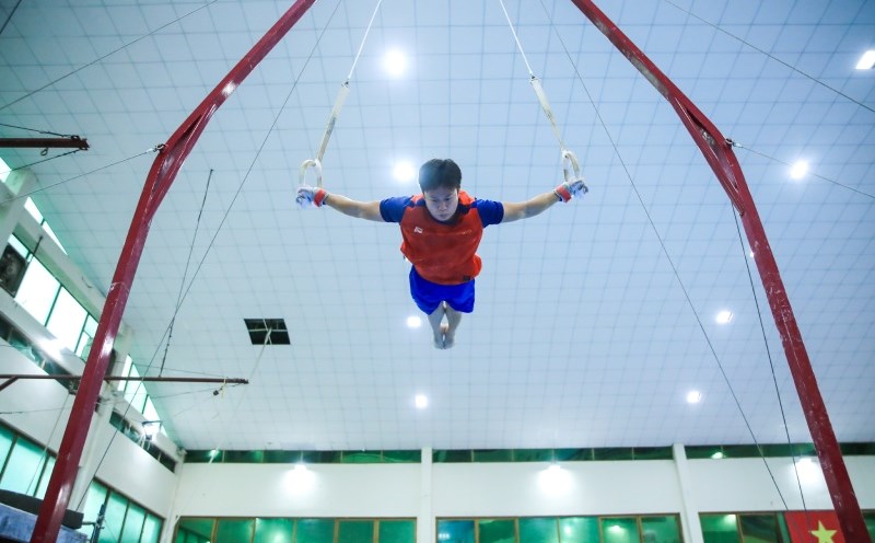 Although not training abroad, the Vietnamese gymnastics team is still trying to practice hard towards the goal of 2 gold medals at the 33rd SEA Games.