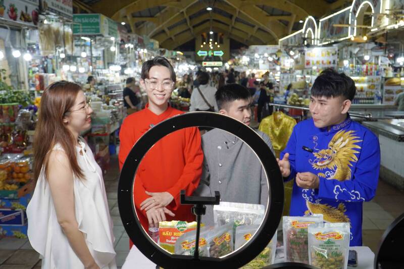 Những ngày qua, hàng trăm tiểu thương tại chợ Bến Thành (TPHCM) đã được các bạn trẻ, nhà sáng tạo nội dung hỗ trợ livestream bán hàng qua kênh TikTok.