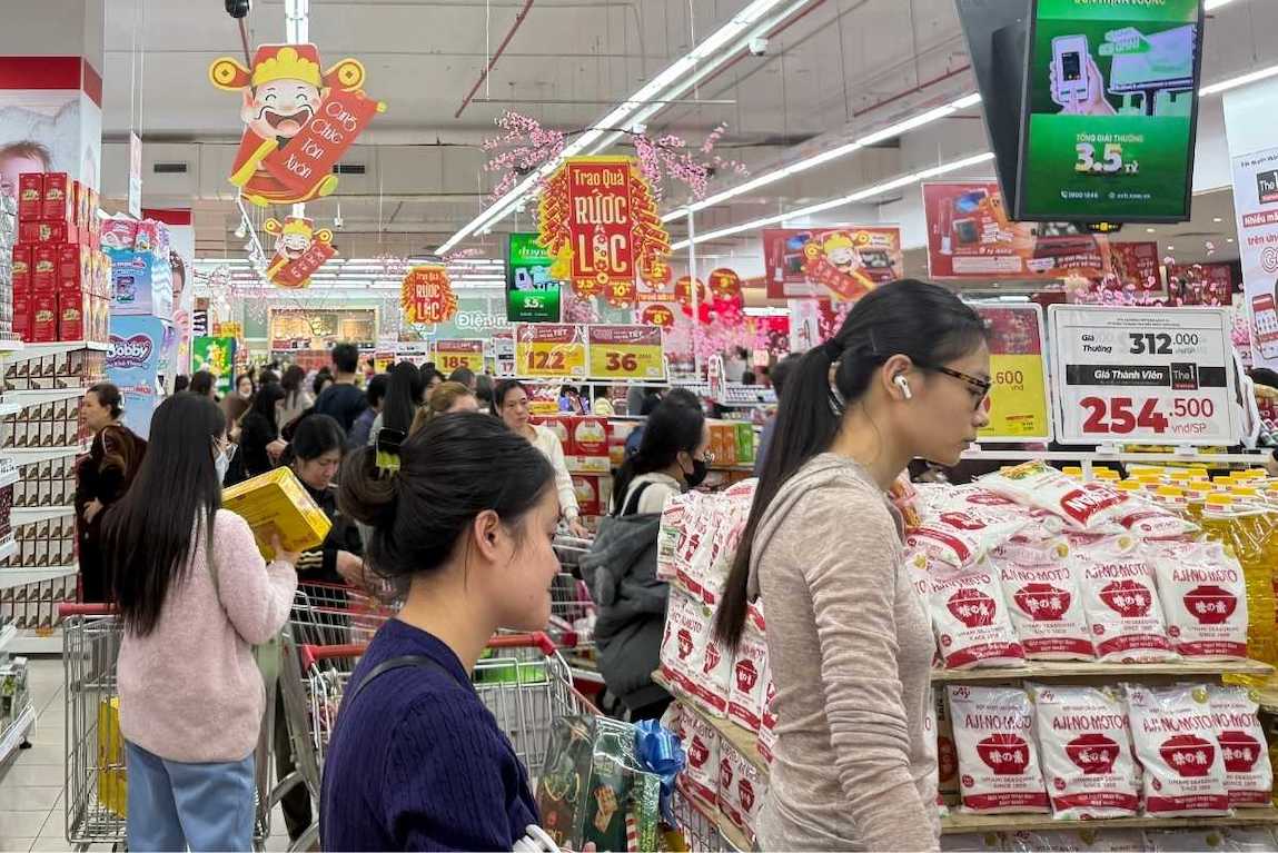 Supermarkets and fashion streets in Ho Chi Minh City are crowded with customers