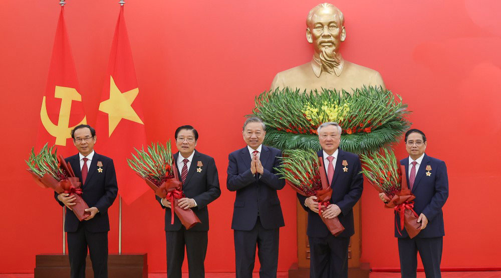 Prime Minister Pham Minh Chinh and many senior leaders of the Party and State received the Military Order of Merit and the Badges of 30, 40, and 45 years of Party membership.