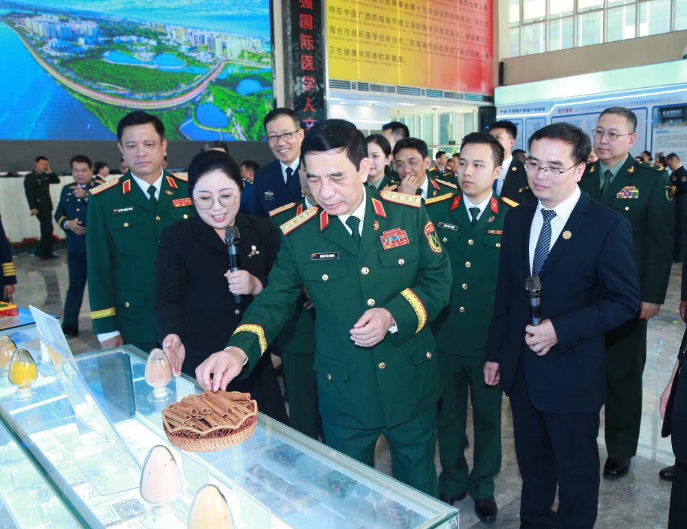Also within the framework of the Exchange, General Phan Van Giang and Senior Lieutenant General Dong Quan and the delegations of the two countries visited the Phòng Thành Cảng International Open Medical Pilot Area, China.
