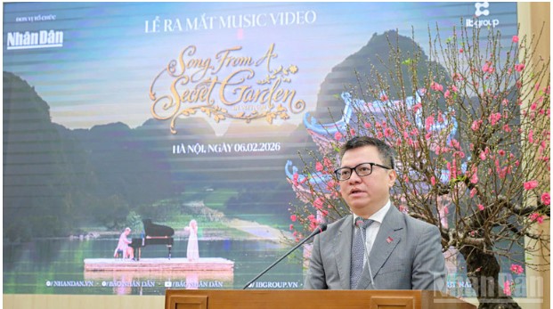 At the launching ceremony, Editor-in-Chief of Nhan Dan Newspaper Le Quoc Minh presented the MV "Song From A Secret Garden–Secret Garden in Vietnam" to leaders of Ninh Binh province, tourism-hotel corporations, airlines, television stations... to spread this special music product, contributing to promoting Vietnamese culture and tourism to domestic and international tourists.