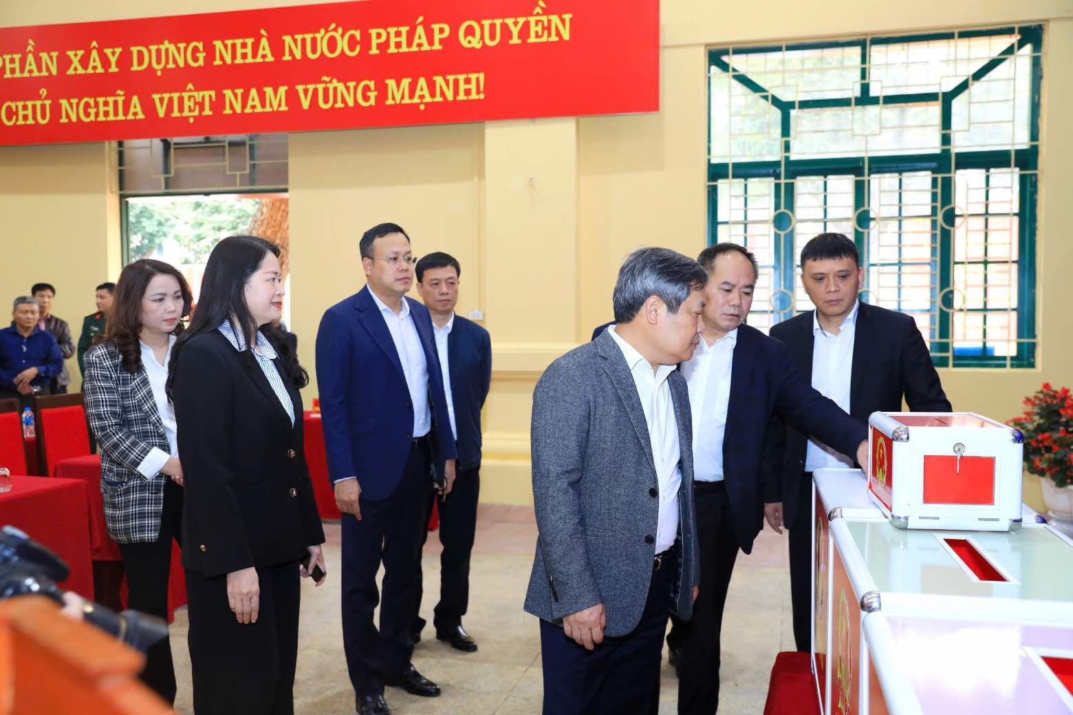 Regarding polling stations, Mr. Vu Dai Thang requested wards to continue training and guiding forces participating at polling stations to ensure a solemn and receptive attitude to serve voters, in accordance with regulations; avoid collisions or inappropriate behaviors.