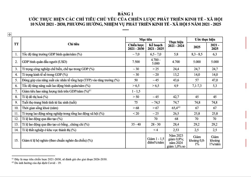 [5] If not counting 2021 due to the severe impact of Covid-19 epidemic leading to GDP growth of only 2.55%, the average GDP growth in the period of 2022 - 2025 will reach about 7.2524-2029%/year, exceeding the target set for the period of 2021 - 2025 (6.5 - 7.0%).