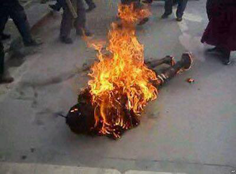 Sự việc càng khiến nhiều người đi đường hoảng loạn khi thanh niên này tiếp tục đổ xăng lên người rồi lao vào chiếc xe đang cháy. Tuy nhiên, nhiều người đi đường đã nhanh chóng cản lại nên người thanh niên không bị gì.