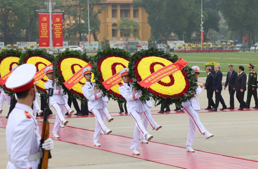 On the morning of February 13, the delegation of the Party Central Committee, the National Assembly, the President, the Government, and the Central Committee of the Vietnam Fatherland Front laid wreaths and visited President Ho Chi Minh's Mausoleum and commemorated heroic martyrs on the occasion of the Binh Ngo Lunar New Year 2026.