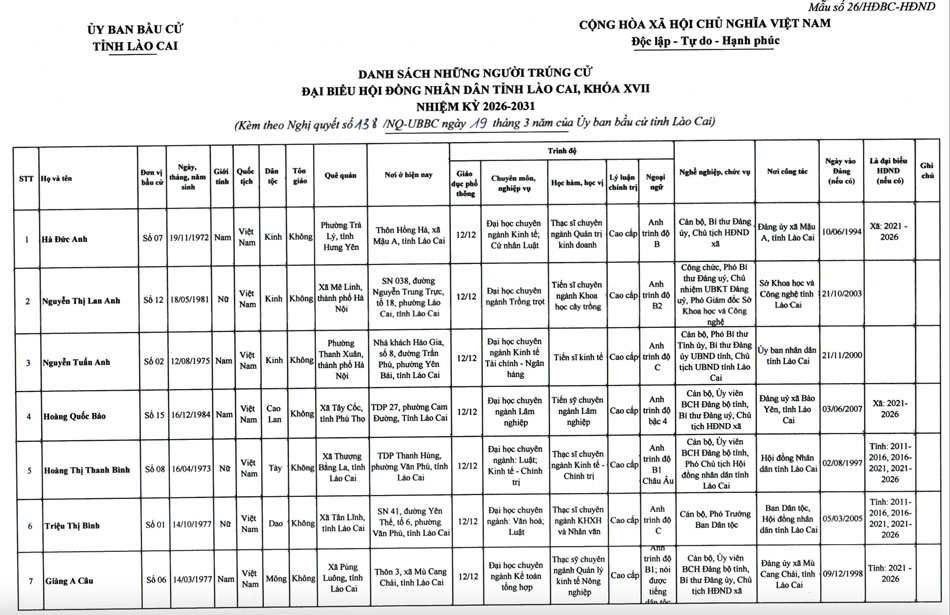 Chairman of Lao Cai Provincial Election Commission Nguyen Tuan Anh affirmed: "The election of National Assembly deputies of the 16th term and People's Council deputies at all levels, term 2026-2031, has been a great success, truly becoming a festival for the whole people. That success clearly demonstrates the spirit of solidarity and responsibility of the entire political system and of each voter towards their homeland and country; and at the same time creates motivation and an important foundation for Lao Cai province to continue to develop quickly and sustainably in the coming time.