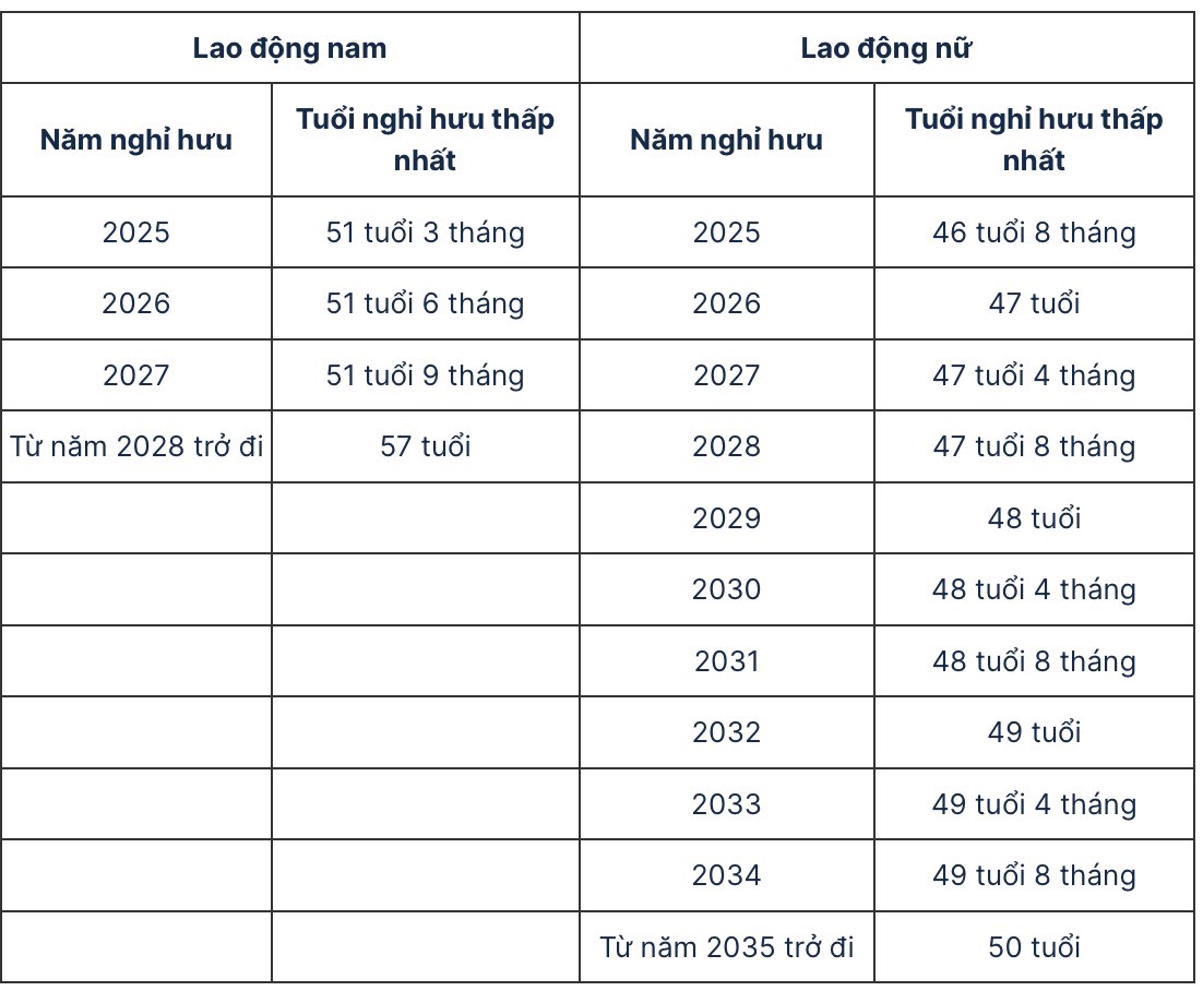 First, have an age of at most 5 years lower than the age specified in Clause 2, Article 169 of the Labor Code, implemented according to the following roadmap: