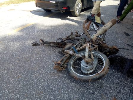 Tại hiện trường, xe máy nát bét, biến dạng, còn ôtô lao vào bụi cây bên đường. Sau tai nạn, lực lượng CSGT đã có mặt xử lý hiện trường, khám nghiệm tử thi, làm rõ nguyên nhân.