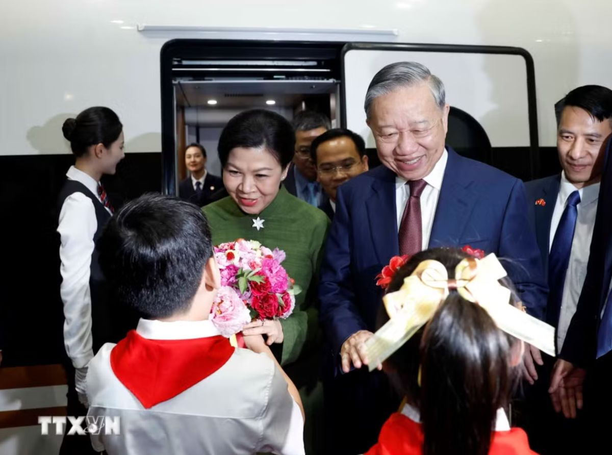 Continuing the state visit to China, on the evening of April 16, 2026, General Secretary and President To Lam and his wife, along with the high-level Vietnamese delegation, arrived in Nanning city after about 10 hours by high-speed train from Beijing.