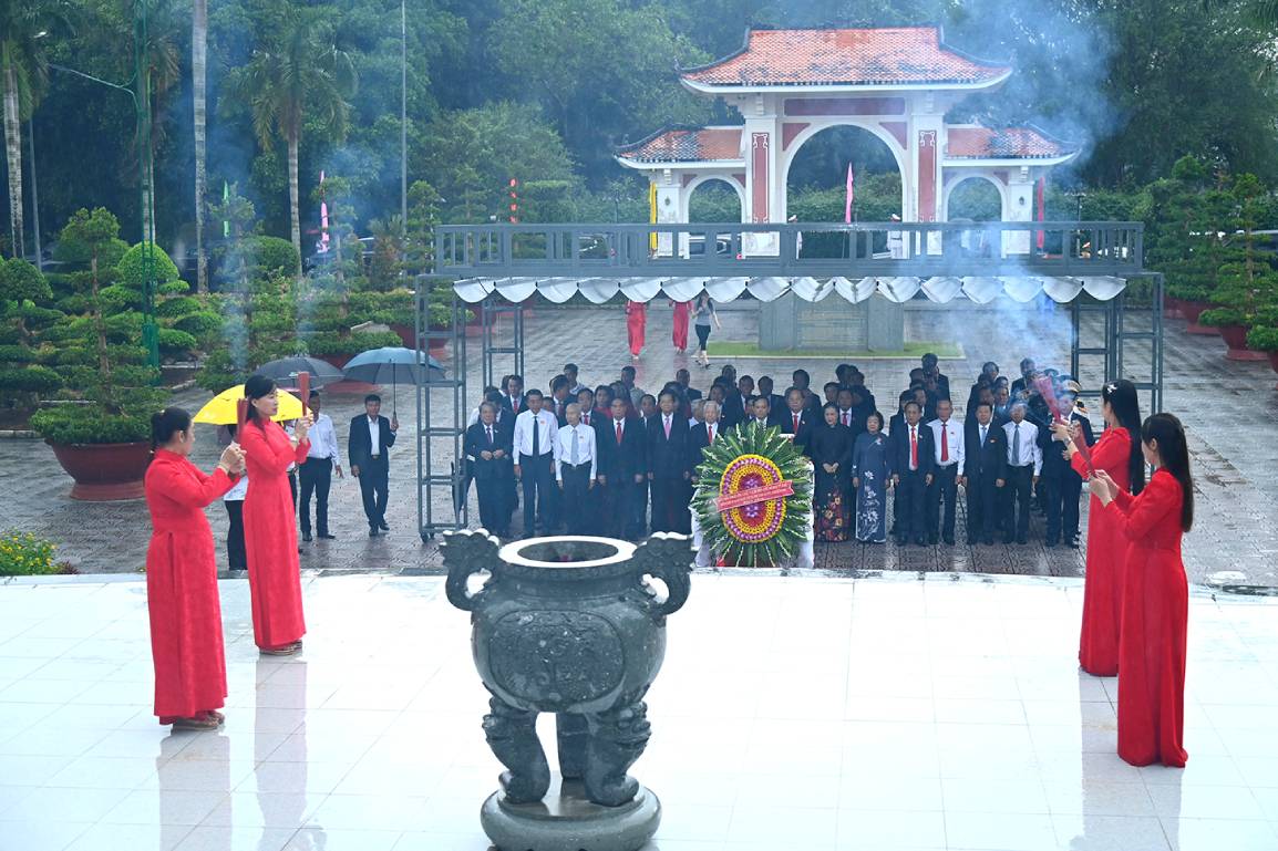 On the morning of October 17, at the President Ho Chi Minh Memorial Site (An Xuyen Ward, Ca Mau City), a delegation of leaders and former leaders of the Central and Ca Mau provinces solemnly held an incense offering ceremony and presented flowers to commemorate President Ho Chi Minh.