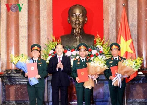 Chiều 1.9, Chủ tịch nước Trần Đại Quang đã trao Quyết định thăng quân hàm cấp Thượng tướng, Trung tướng cho các sỹ quan Quân đội nhân dân Việt Nam.