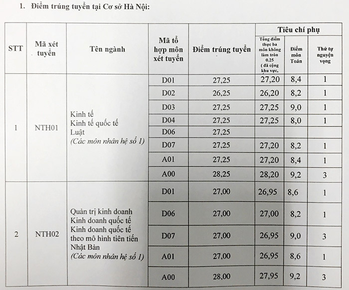 Điểm chuẩn chính thức của Đại học Ngoại thương: Cao nhất 28,25 điểm