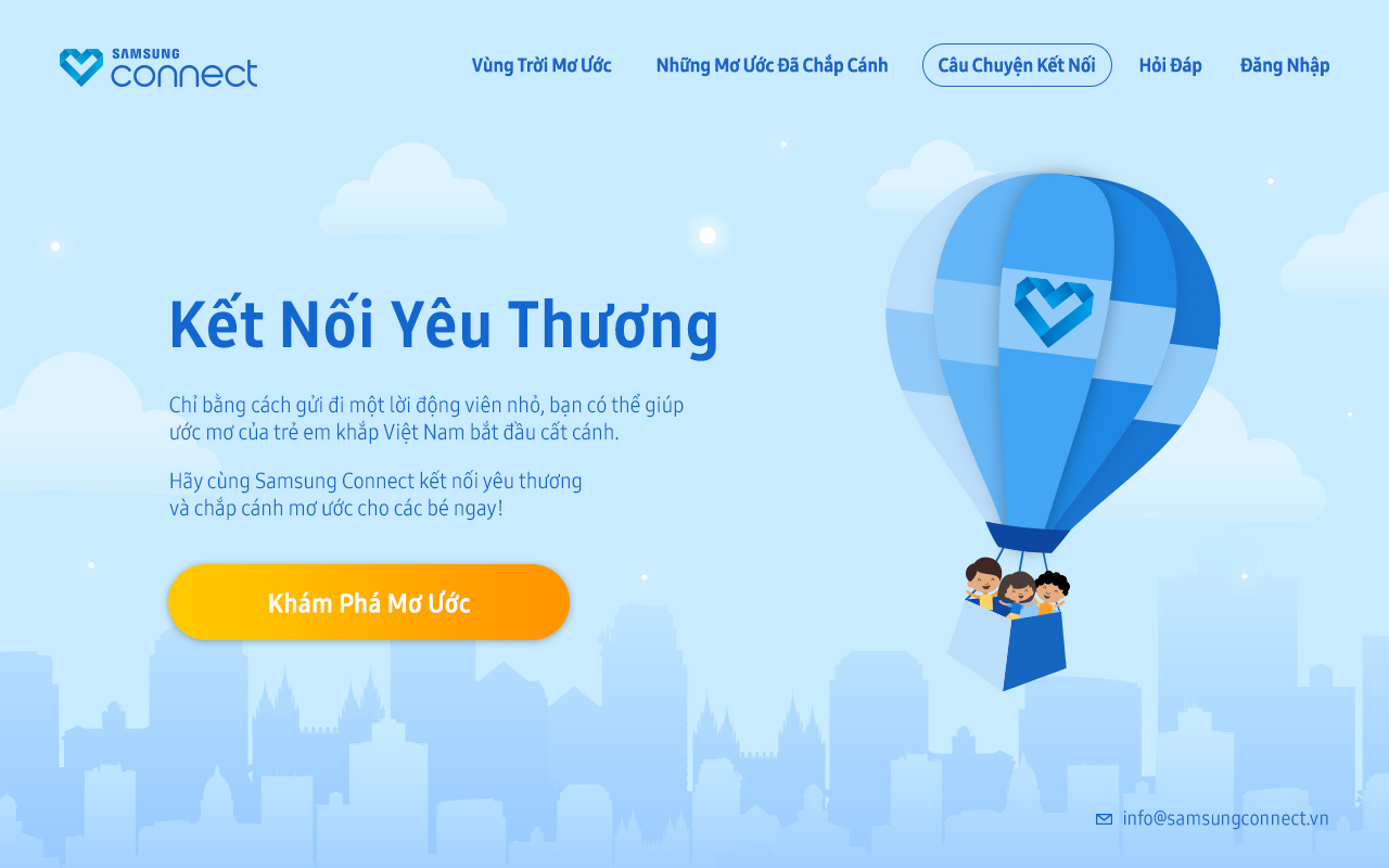 Với mong muốn xây dựng nên câu chuyện truyền cảm hứng về “một lời động viên nhỏ cũng có thể nuôi dưỡng một ước mơ lớn”, Hành trình kết nối những ước mơ của Samsung Connect sẽ diễn ra ở các vùng miền Bắc - Trung - Nam từ 29/07 đến 15/11/2017.