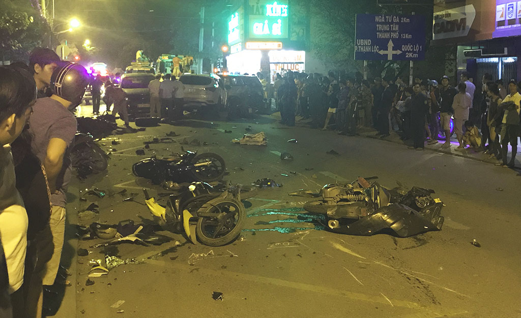 Khoảng 20h ngày 22.7, xe 7 chỗ đang chạy đến giao lộ Hà Huy Giáp - Tô Ngọc Vân (quận 12) thì bất ngờ tông vào 9 xe máy, 3 tô làm 2 người tử vong, nhiều người nhập viện cấp cứu.