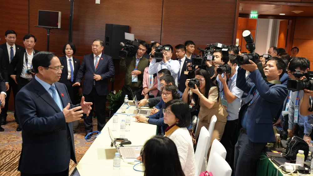Prime Minister Pham Minh Chinh visited and encouraged officials, reporters, and editors working at the Press Center of the 14th Party Congress.