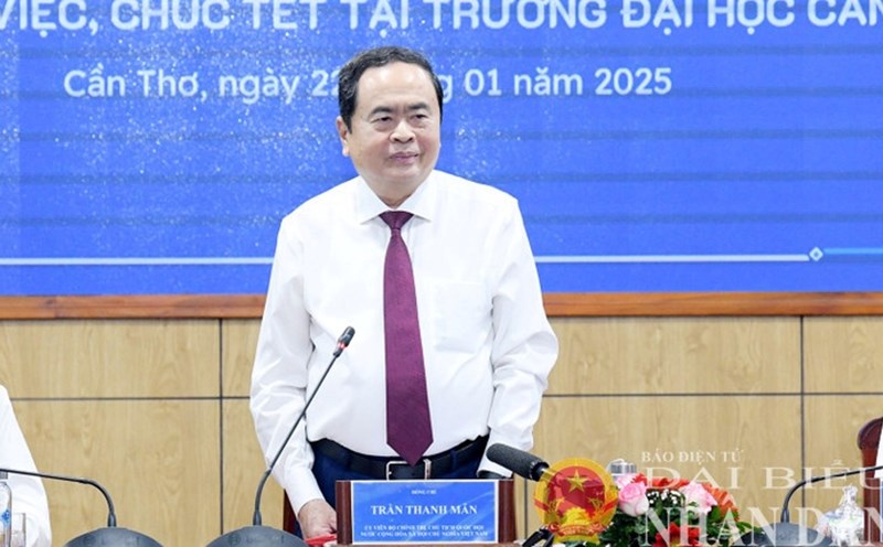 Can Tho - On the morning of January 22, National Assembly Chairman Tran Thanh Man and his delegation visited, worked and celebrated Tet at Can Tho University.