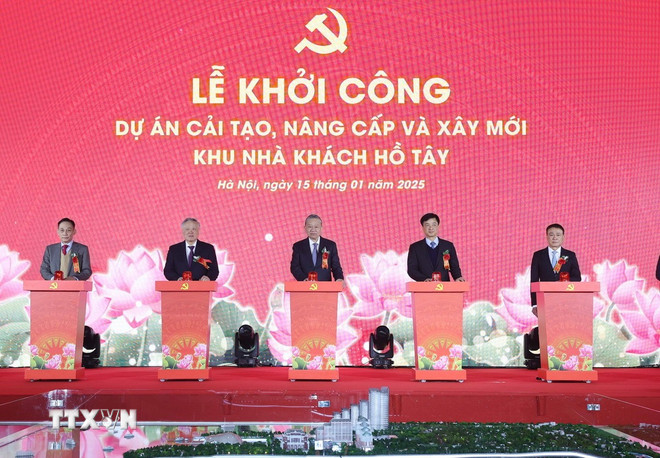 General Secretary To Lam attended the groundbreaking ceremony of the project to renovate, upgrade and build a new West Lake Guest House this morning (January 15).