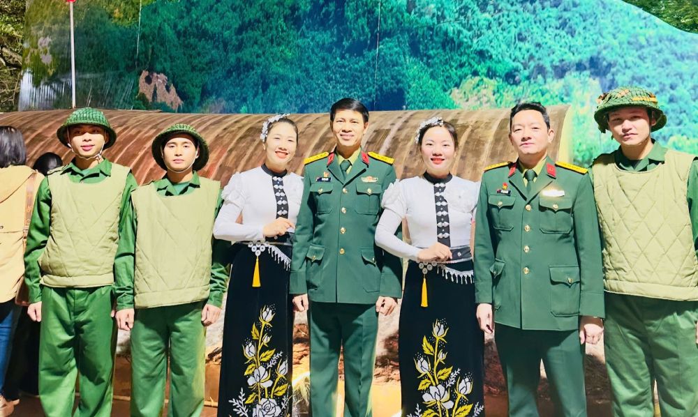 More than 3,400 domestic and international visitors came to visit and take souvenir photos with officers and soldiers at the De Castries tunnel cluster model.