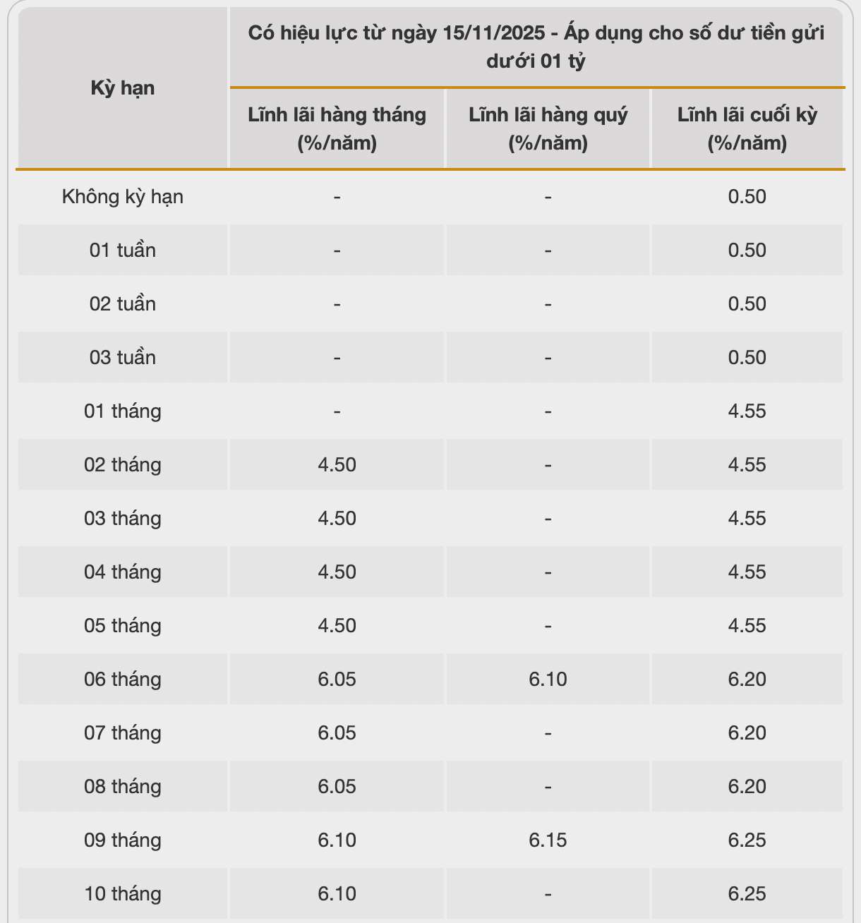 PVcomBank's interest rate is currently the highest in the market, up to 9% for a 12-month term with a minimum deposit of VND 2,000 billion. Under normal conditions, PVcomBank lists the highest 12-month interest rate at 5.6% when customers deposit money online and 5.3% when depositing money at the counter.