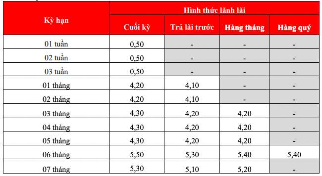 Following that, HDBank with an interest rate of 7.7% for a 12-month term, with a minimum balance of VND500 billion. Under normal conditions, HDBank lists the highest 12-month interest rate at 5.8% when customers deposit money online and 5.7% when depositing money at the counter.