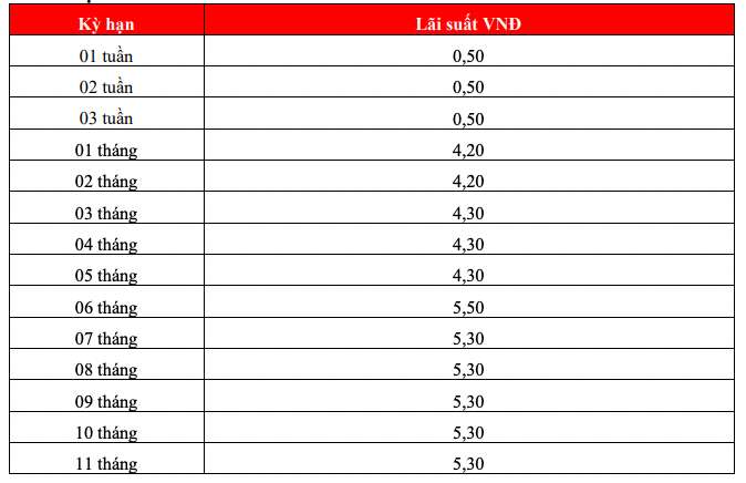 Following that, HDBank with an interest rate of 7.7% for a 12-month term, with a minimum balance of VND500 billion. Under normal conditions, HDBank lists the highest 12-month interest rate at 5.8% when customers deposit money online and 5.7% when depositing money at the counter.