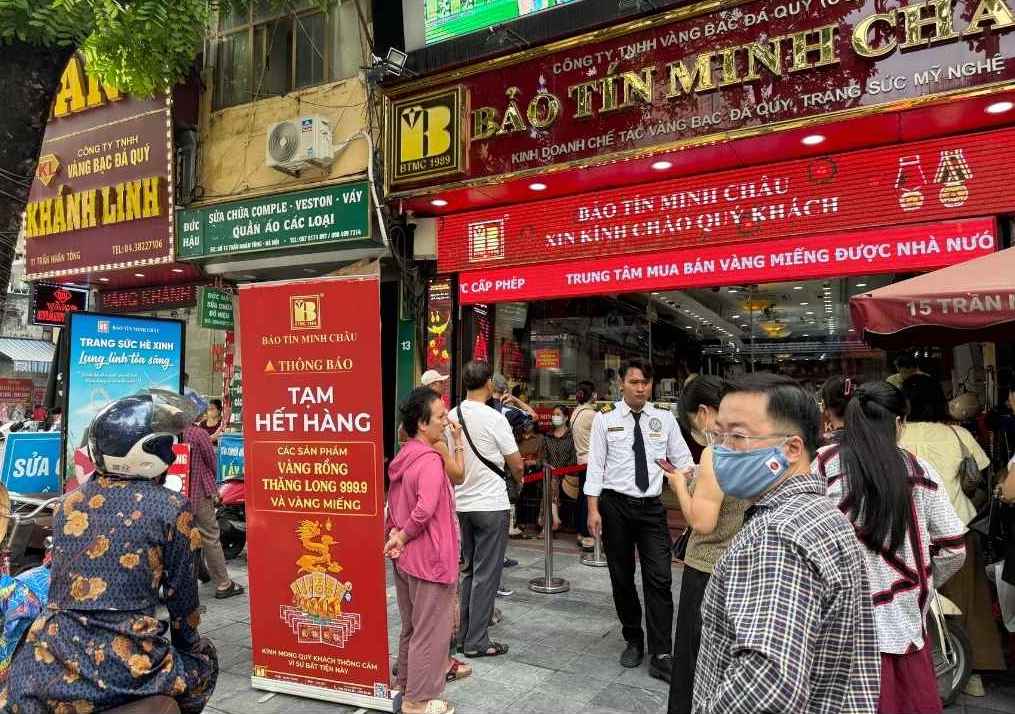 At gold shops in Hanoi, people's purchasing power is still high. Many points have temporarily stopped selling, but people are still waiting in long lines in the hope of buying gold bars or gold rings. Meanwhile, many people choose to leave because it is too difficult to buy.