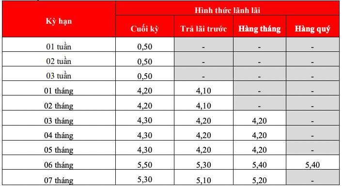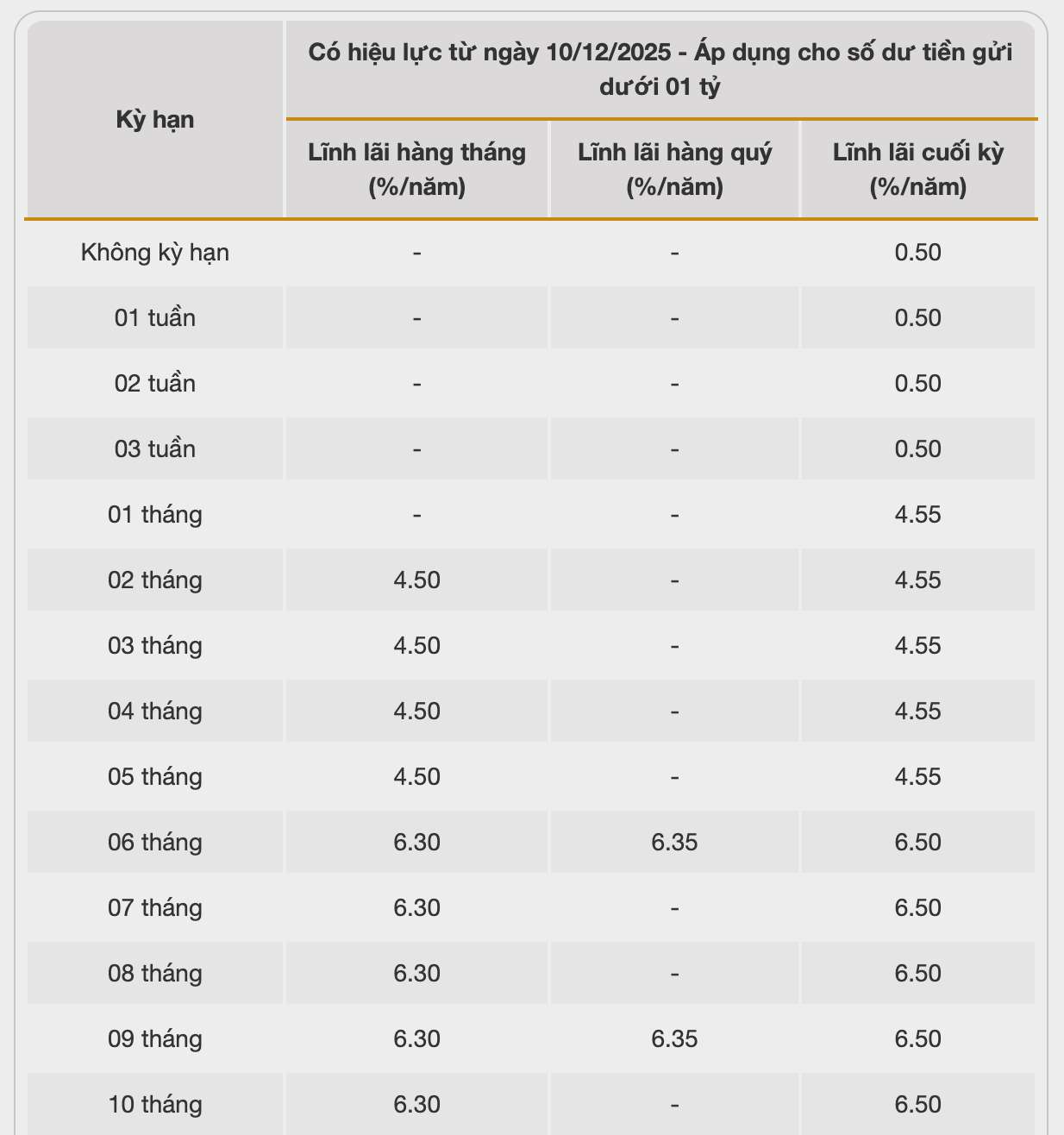 Vikki Bank is listing the highest interest rate for 13-month deposits at 6.7%/year when customers deposit money online and receive interest at the end of the term. For other terms, customers list interest rates at 0.5-6.7%/year.