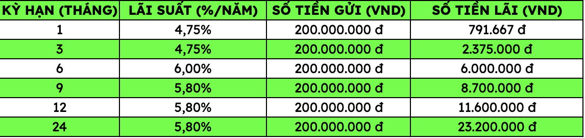 Deposit 200 million VND at VPBank, how much interest will you receive for each term?