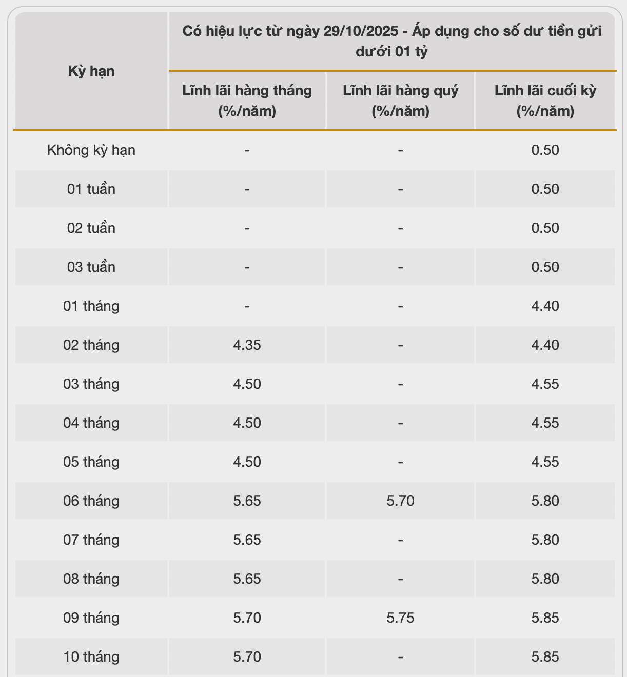 Following that, HDBank with an interest rate of 7.7% for a 12-month term, with a minimum balance of VND500 billion. Under normal conditions, HDBank lists the highest 12-month interest rate at 5.8% when customers deposit money online and 5.7% when depositing money at the counter.