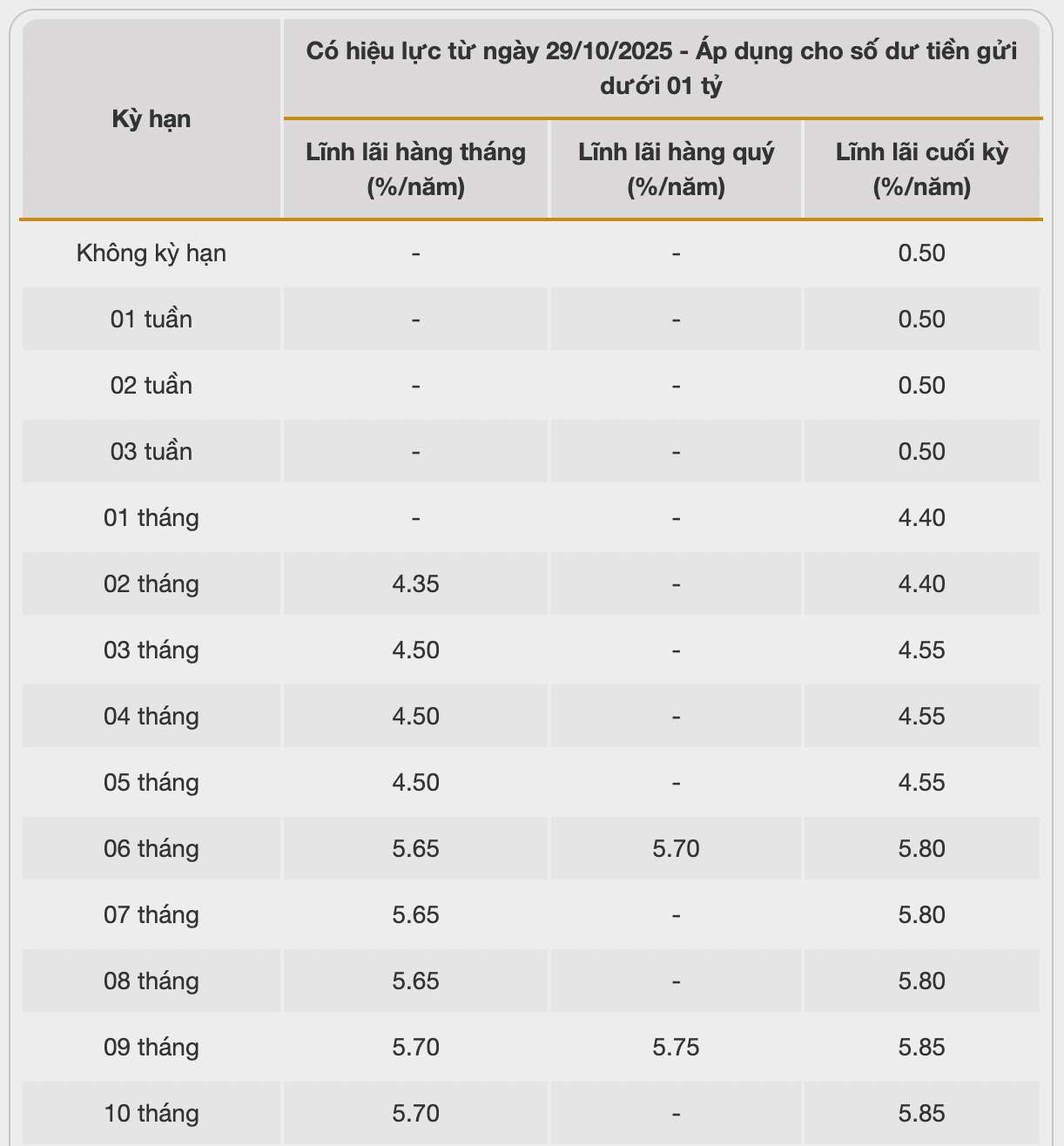 Following that, HDBank with an interest rate of 7.7% for a 12-month term, with a minimum balance of VND500 billion. Under normal conditions, HDBank lists the highest 12-month interest rate at 5.8% when customers deposit money online and 5.7% when depositing money at the counter.