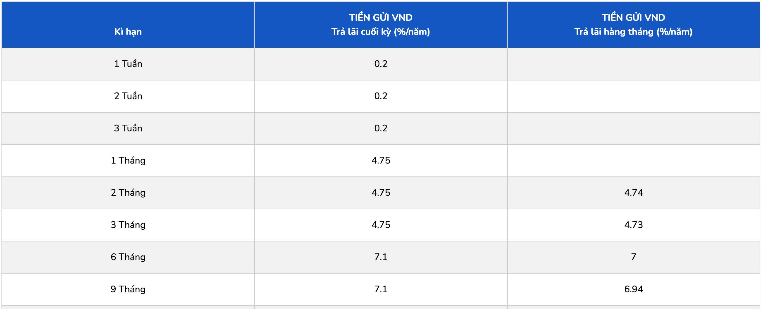 PGBank lists the highest interest rate for a 6-month term at 7.1%/year when customers receive interest at the end of the term; if they receive interest monthly, they receive an interest rate of 7%. PGBank lists the highest interest rate at 7.2% when customers deposit money for a 12- or 13-month term.