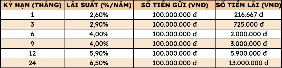 Thus, depositing 100 million VND at Agribank, customers can receive the highest interest rate as follows (applied to individual customers depositing directly at the counter):