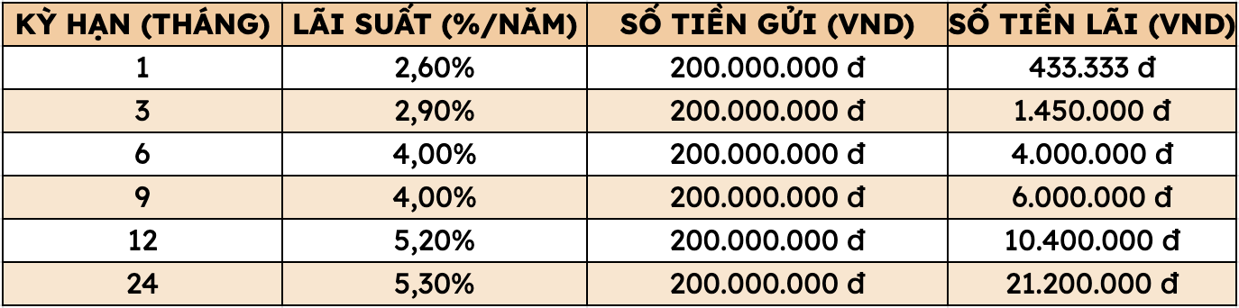 Thus, depositing 200 million VND at Agribank, customers can receive the highest interest rate as follows (applied to individual customers depositing directly at the counter):