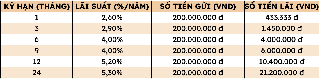 Thus, depositing 200 million VND at Agribank, customers can receive the highest interest rate as follows (applied to individual customers depositing directly at the counter):