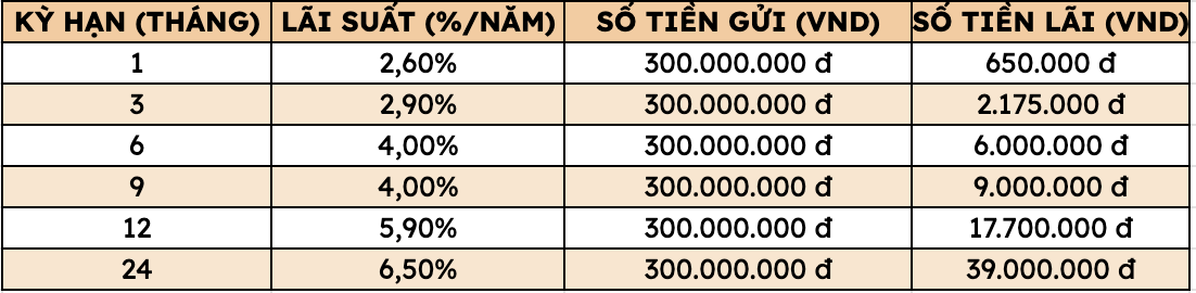 Thus, depositing 300 million VND at Agribank, customers can receive the highest interest rate as follows (applied to individual customers depositing directly at the counter):