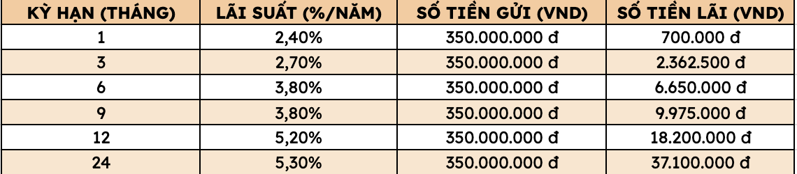 Thus, depositing 350 million VND at Agribank, customers can receive the highest interest rate as follows (applied to individual customers depositing directly at the counter):