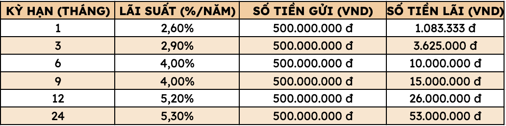 Thus, depositing 500 million VND at Agribank, customers can receive the highest interest rate as follows (applied to individual customers depositing directly at the counter):